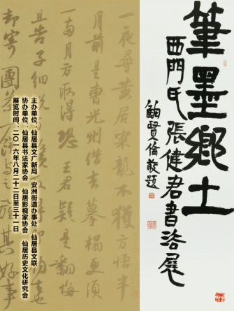 ? ? 8月22日上午,由仙居县文广新局、安洲街道办事处、仙居县文联主办,仙居县书法家协会、仙居影视家协会、仙居历史文化研究会协办的《笔墨乡土——西门氏张健君书法展》在台州书画院开幕,展期至2016年8月31日,欢迎广大市民和书画爱好者莅临参观。